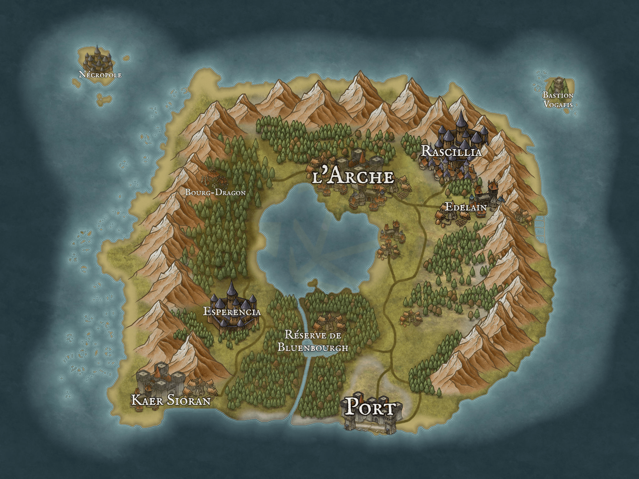 Capitale des Druides d'Elianor, les forets et parcs de Bluenbourgh sont reconnus pour contenir une grande faunes et flores sauvages protégées de la corruption.
