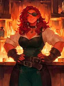 Alma est la fille du Tenancier du Saloon de Sandune. Impressionnée par la Guilde et leurs capacités, elle a fait le choix de quitter Sandune et se proposer en tant que barman au Hall d'Aurore. De nature joyeuse et fêtarde, Alma est une alliée de repos et de fêtes indispensable aux aventuriers.