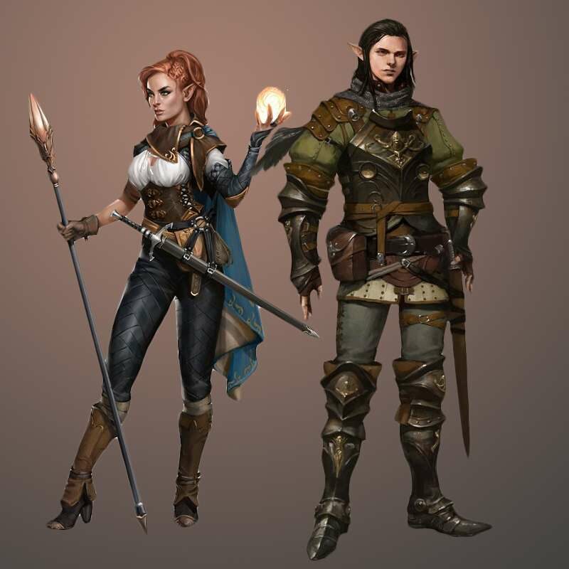 Plus sveltes que les humains et reconnaissables à leur grande taille et leurs oreilles pointues. Il s'agit d'un regroupement de races très nobles et orientées vers la magie sous toutes ses formes. En plus de cette affinité avec le flux, le corps des Elfes en fait des créatures agiles par nature. Les Elfes sont des êtres très pâles dans leur globalité, seule les Nafraäts se permettant d'avoir des teintes plus extravagantes.