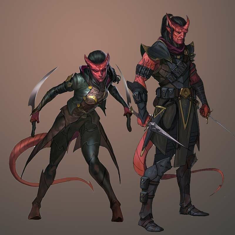 L’origine des Nafräats se trouve dans le sang. Et pour la comprendre, il faut se replonger dans une guerre très précise de l’histoire elfique : celle qui opposa Forlonde et ses alliés au royaume de Bael-Turath. Bael-Turath était un royaume elfique étendu et puissant. A sa tête, l’Impératrice Rouge avait conquis de nombreux territoires et avait étendu son royaume sans relâche. Cependant, des conflits internes commencèrent à se faire entendre, et une famine frappa le royaume après des circonstances climatiques désastreuses. Très vite, la guerre civile éclata et le royaume s’en trouva fortement affaibli. L’un des royaumes elfiques voisins, Forlonde, vit alors l’opportunité de défaire Bael-Turath et de s’étendre lui-même. Il se lance alors dans un assaut d’envergure à la conquête de Bael-Turath. L’Impératrice Rouge vit une grande partie de ses troupes décimées, nombreux hommes et guerriers furent tués, laissant derrière eux orphelins et veuves. Incapable d’accepter ce massacre et sa propre défaite, l’Impératrice Rouge convoqua les plus puissantes mages encore vivante de son royaume et réalisa un rituel connu sous le nom de la Lune Sanglante. Apparut alors un démon, connu sous le nom de Donom. L’Impératrice sacrifia sa vie et celle des trois matriarches des Grandes Maisons de Bael Turath en échange du triomphe de son peuple. Baignant dans leurs propres sangs, l’Impératrice et les trois Matriarches virent leur peau devenir mauvâtre, des cornes pousser sur leur crâne et une queue apparaître dans leur dos. La bénédiction, ou malédiction, de Donom se propagea à travers tout le royaume, transformant chacun de ses habitants en une créatures aux traits et à la puissance démoniaque. Avec leurs pouvoirs nouvellement acquis, les matriarches rétablirent l’ordre au sein de Bael Turath. Les derniers hommes et les nombreuses femmes se lancèrent à corps perdu dans la bataille face à Forlonde jusqu’à finalement les repousser au-delà de leur frontière.