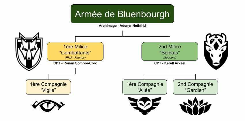 Le Capitaine Kerell Arkael a succédé au grade après que l’ancien chef de la garde a été affecté aux forces Halbranaises. C’est un vétéran de guerre d’Elianor ayant combattu les forces de la Corruption aux côtés du régent et fondateur Adenyr Nethfrid en Ordalie face au terrible Nax. Après la fin de la guerre et avec l’installation d’une paix amplement mérité, l’armée de Bluenbourgh et la Garde ont été fusionnées afin de faire un unique corps armé capable d’assurer la sécurité et les missions au nom du Domaine.